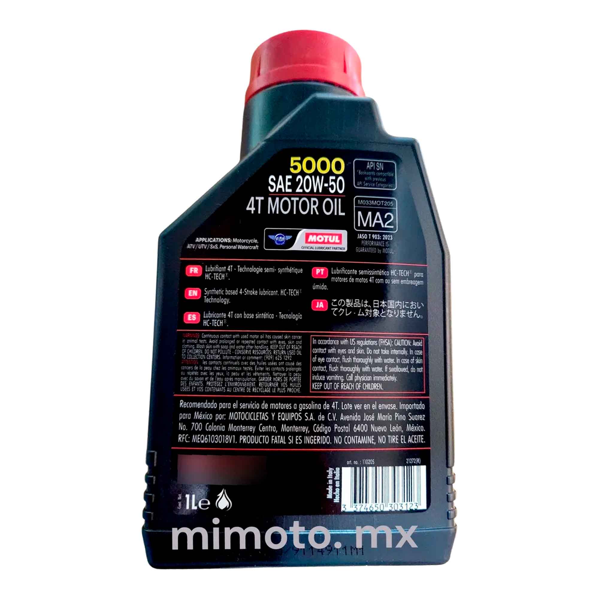 - Certificaciones JASO MA2 y API SN para máximo desempeño